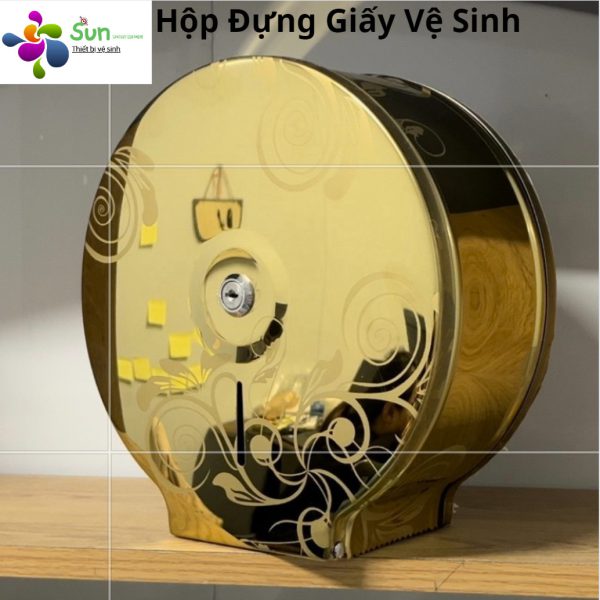 Hộp đựng giấy vệ sinh công nghiệp inox cuộn lớn mạ vàng sang trọng . Hộp đựng giấy vệ sinh công nghiệp inox cuộn lớn